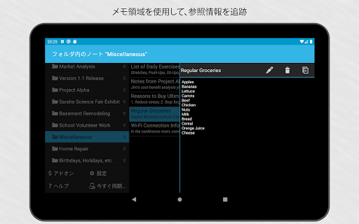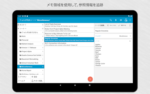 TO-DO項目ではない重要な情報を確認できます。 アプリのメモエリアでは、後で必要になる参照情報を記録できます。