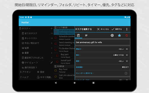 シンプルだけどパワフル。 基本的なto-doリストから複雑なプロジェクトを管理するものまで、このアプリでは、様々なニーズに適切に対応いたします。必要とする機能をオンに、不要な機能をオフに設定して利用できます。