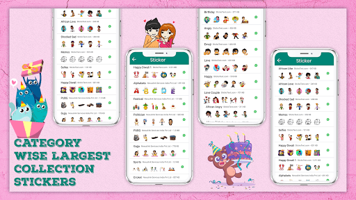 ** Category for Whatsapp :- Christmas stickers, New Year Stickers, Happy Birthday Sticker, Good Morning Stickers, Good Night Stickers, Happy Anniversary Stickers, Love Stickers, Love Quotes Stickers, Lovely Couple Stickers, Daily usage Stickers, Kisses Stickers, Alphabets Stickers, Gujju Stickers, God Stickers, Funny Stickers.