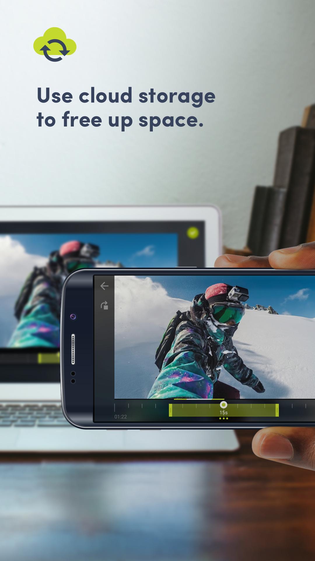 Upload and sync videos to free up space on your devices. Access and edit them anywhere – on your phone or computer.