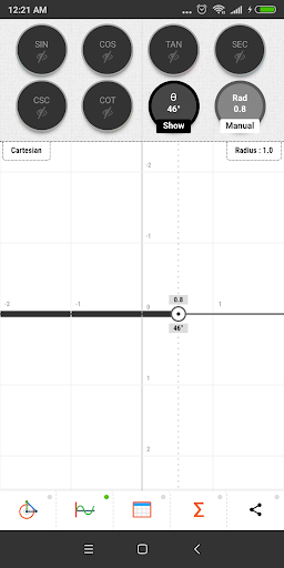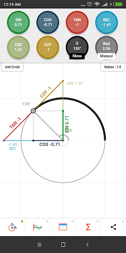 First version of Trigonometry Unit Circle. Right now it is developed in HTML and rendered through android webview. The performance of the is will not be very smooth for the low end mobiles because of webview rendering. The next version will be based on user response.
