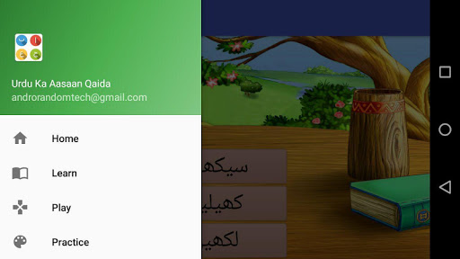 1. In the learn activity there is the Urdu alphabet's qaida. By swiping right and left new letters can be learned. There is also a button to listen again the sound of the letter;