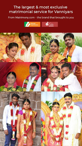 の一部であるVanniyarMatrimonyアプリは、世界中のヴァンニヤールのための最も信頼されている結婚サービスです。海外からのTamil Nadu、India、NRISを渡る主要都市からヴァンニヤーの新郎新婦プロファイルを選択できます。何千人ものヴァンニヤーがここで彼らの人生のパートナーを見つけました。あなたもパーフェクトマッチを見つけることができます。
