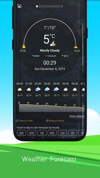 - Change unit setting: Temperature (C/F), Time format (12h/24h), Precipitation (mm, inch), wind speed (km/h, mi/h, m/s), pressure (mmhg, hPa, mbar)