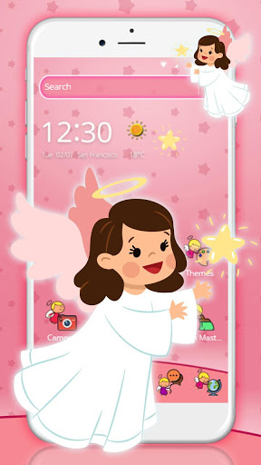 White Fairy Angel Theme is a Caricature and animated Theme with all pink, salmon, rosy and blush emojis with kawai fairy Themes. Kawai Animated Theme designed for girls who love pinkish and salmon Animated and want to animated look to their plain Mobile phone today. It has pinkish Animated set as wallpaper filled with different nuances of rose sheds.