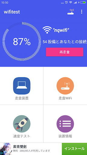 3.接続されたネットワークのためのネットワークの速度をテストすることができます。"