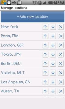 - Unlimited number of locations; enter all your favorite locations and easily keep track of the current time and weather conditions