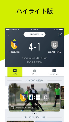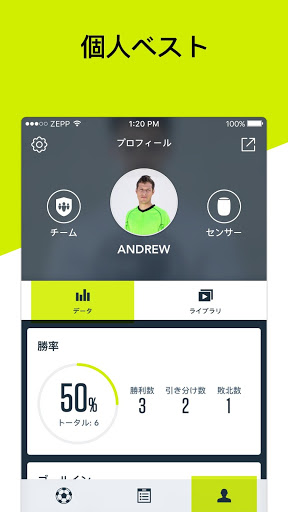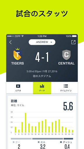 1人のプレイヤーならすばやく試合が作成可能、またはセンサーを付けた複数プレイヤー用の試合のセットアップもできます アプリが自動的にチーム全体の、そして個々のプレイヤーのハイライトとパフォーマンス数値を作成してくれます。