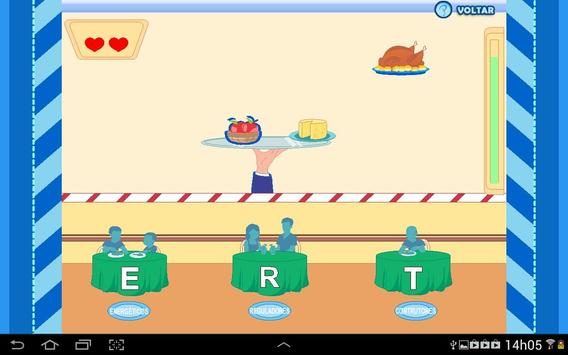 O poder dos alimentos: Jogo que mantém a criança entretida, pois, além de testar sua coordenação motora para equilibrar os pratos na bandeja, também deverá saber em qual mesa deverá colocá-lo, de acordo com o tipo de alimento que ela contém.
