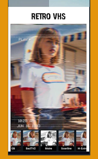 フィルムラグリッチビデオエフェクト無料、あなたは簡単に芸術的な方法でビデオを歪めることができます。ビデオだけをタップして、マルチリアルタイムフィルムラグリッチエフェクトから1つを選択して、ビデオレコーディングで適用してください。
