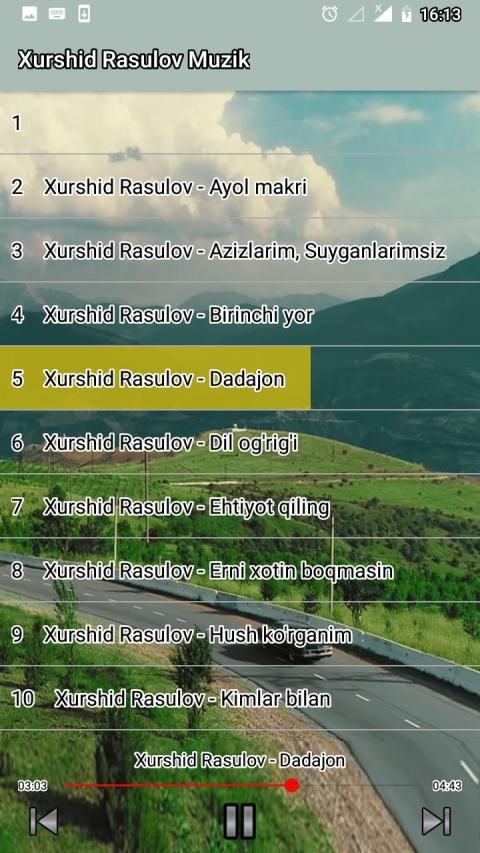 Siz o'zbek musiqasi va san'atkor Xurshid Rasulov qo'shiqlarini yoqtirasiz. Siz XURSHID RASULOV qo'shiqchining muxlisiz. ushbu ilovani yuklab oling va Sevimli ijrochingiz uchun eng yaxshi MP3 pleylistini toping. Ushbu dasturda Xurshid Rasulov qo'shiqlarini tinglang. ilovalar: - Oddiy foydalanish uchun - Internetsiz ishlaydi - Displeyni kutish rejimida ishlaydi - eng yaxshi dizayn
