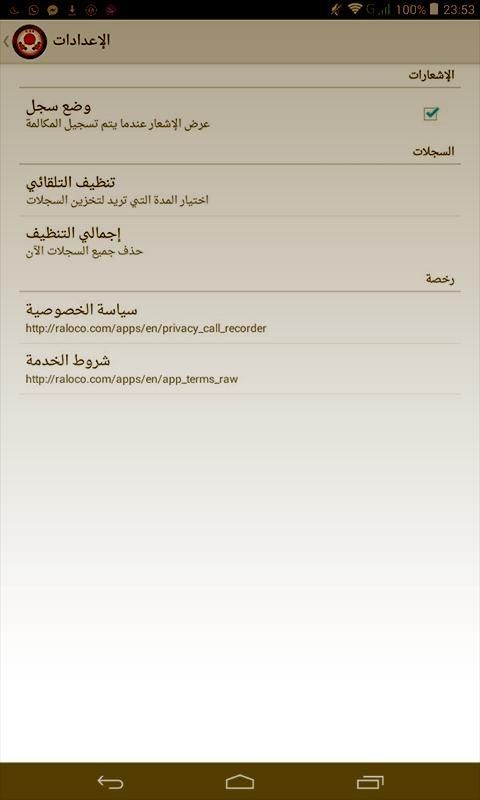 وإننا نقدم لكم أجود تطبيق عربي بالمجان يمكنكم من تسجيل مكالماتكم الهاتفية بجودة صوتية شديدة الوضوح، وبشكل أوتوماتيكي وتلقائي دون أن تحتاجوا إلى بذل أي مجهود من طرفكم كما يمكنكم تخزينها في ذاكرات هواتفكم أوعلى بطاقات وخدمات التخزين المختلفة.