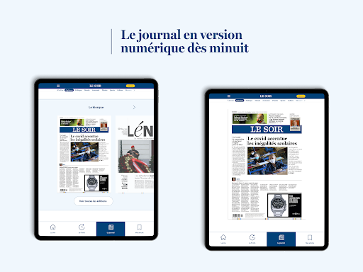 アプリケーションでアクセスできるようになりますベルギーや世界のニュース、政治、スポーツ、健康、編集社長、クロニクル、クロール、最高の音楽と映画の文化セクション、またはテクノセクションなどのさまざまなセクション。読者、あなたは次のような新聞だけでなく、そのすべてのサプリメントをダウンロードすることができます。最初の月に当社のオファーを0.99ユーロで購読することにより、項目とすべてのコンテンツ。コミットメントなし。