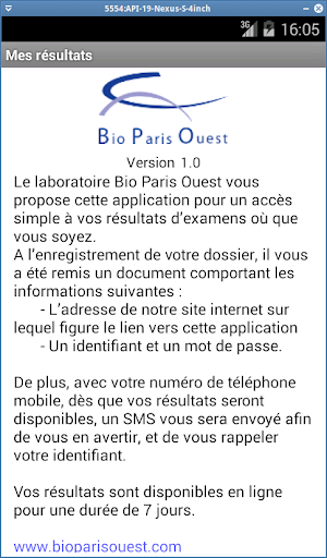 Le laboratoire BioParisOuest vous propose de consulter et télécharger vos résultats d’examens biologiques de manière confidentielle et sécurisée, sur votre smartphone ou tablette.