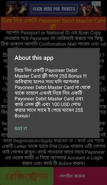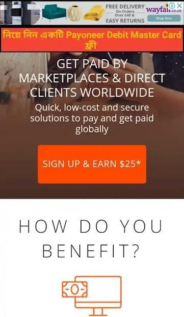 অবিশ্বাস্য হলেও সত্য যদি আপনার Payoneer Debit Master Card না থেকে থাকে তাহলে এখনই নিয়ে নিন একটি Payoneer Debit Master Card এবং কার্ড এদম ফ্রী এবং 100 USD লোড করার সাথে সাথে ই পেয়ে যাবেন 25$ Bonus।