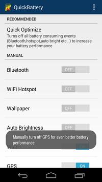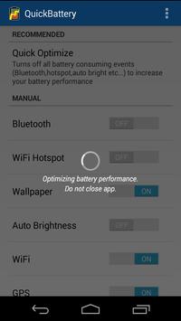 QuickBattery calibrates your battery performance by intelligently turning off unwanted and unused hardware and processes to improve your battery life.