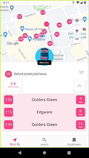 This app is for London buses. App can store bookmarked stops. User friendly and intuitive.