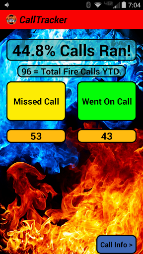 Simply put this app is designed for you to keep personal track of your call run percentages. Just press "Went On Call" or "Missed Call" and this app will keep a running total of all calls and a running percentage of those calls you ran year to date. That's it!