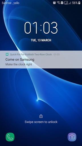 Recent updates to some Samsung phones have made the lock screen clock difficult to read. It now takes up two lines, hours on one, minutes below. Many people find this hard to read.