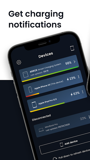 アーローアプリは、一箇所のすべてのデバイスのバッテリレベルを監視し、デバイスが充電されているか充電が必要なときに通知します。それは最適化された課金勧告を持つあなたのデバイスの寿命を伸びています。または、ラップトップとすべてのデバイスをどこでも充電するためにArroe Smart充電システムと一緒にアプリをペアにする。