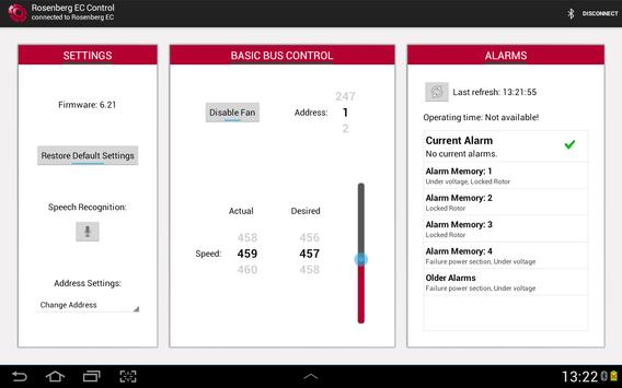 A TIA-485-A TO BLUETOOTH CONVERTER AND A ROSENBERG EC FAN IS MANDATORY for use this app! Contact email below.