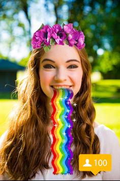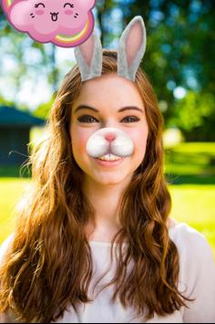 contenant : visages, snap, autocollants, emojis, caméra de mascarade,texte snap,Doggy faace,effet texte dans la camera face & des snap filtres tels que animaux (chien, chat, tigre….),