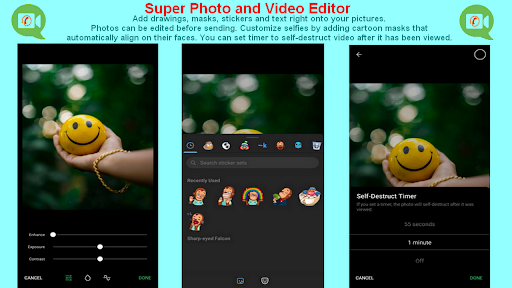 表示された後に、タイマーを自己破壊ビデオに設定できます。マスク、ステッカー、テキストを追加してビデオを編集します。