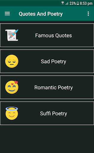 This app offers you a stream of famous and interesting quotes and poetry that you can learn. We also add quotes and poetry to our App on user request and this is too much interesting. By using this App you can also share your favorite quotes and poetry with friends.