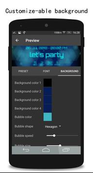 All events has beautiful animated background with lots of customizable items such as fonts, font size, colors. Beautiful sets of pre-define background already available to choose.