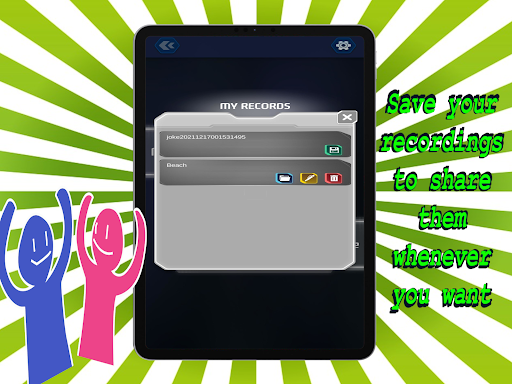 音声のためのあなた自身の音を作成します。音楽、それらを共有しましょうあなたは好きです。このアプリケーションでは、さまざまなソーシャルネットワークを介して面白いオーディオメッセージを送信するための電話冗談音を作成できます。あなたはあなたが仕事をしているときにあなたがパーティーで飛行機や電話のいたずらを旅しているのを信じる、あなたの友人があなたがパーティーで旅行していること、またはあなたが本当に休暇中に働いていることを信じていると信じています。あなたが創作することができる冗談の音声メッセージの限界はあなたの想像力にあります!