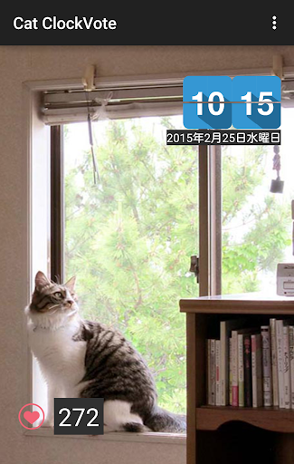 "Cat ClockVote" は、かわいらしい猫のいろんなポーズや仕草の写真を楽しめます。 時計のアラーム機能や目覚まし機能として、ネコの可愛い声や、女優の声でアラームを出すこ とができます。