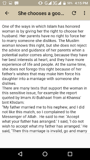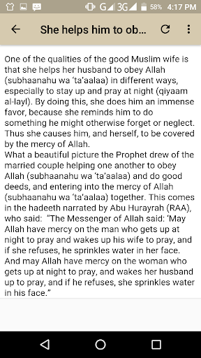 義の女性はイスラム教徒の家族の柱、礎石と基礎です。彼女は、預言者が言ったように、男の人生の中で最大の喜びとして見られています。アッラー(Subhaanahu Wa 'Taaalaa)は、彼女と一緒に男性に与えることができます。彼の妻と、彼は比類のない静けさと喜びを見つけることができます。この世界では女性はどのようにして最高の快適さになることができますか?彼女自身の女性らしさに忠実に、彼女はどのようにして、彼女自身の女性らしさに忠実で、そして愛されていますか?これがこのアプリケーションで説明されることです。