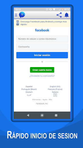 Esta aplicación para navegar y acceder a facebook es todo lo que necesitas, ya que su peso es totalmente ligero, corre a una gran velocidad y el consumo de la batería es muy mínima.