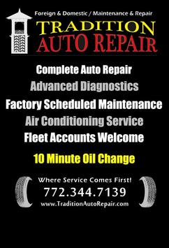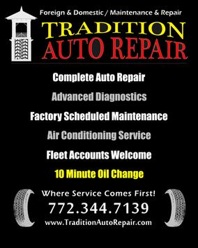 Tradition Auto Repair of Port St. Lucie performs major engine repair, diagnostic testing, electrical repair, brake repair and replacement, wheel alignment, transmission repair, tune up services, lube oil and filter replacement, emergency repairs, Fleet maintenance and much more. We service all makes and models, including but not limited to: