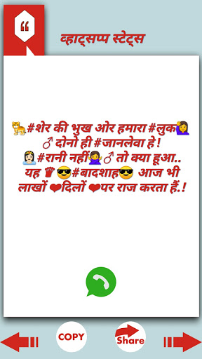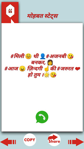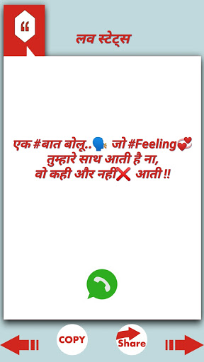 This is latest new love status for hindi 2021 easy share on social media, easy user interface. You can choose Shayari Status from the following best categories -