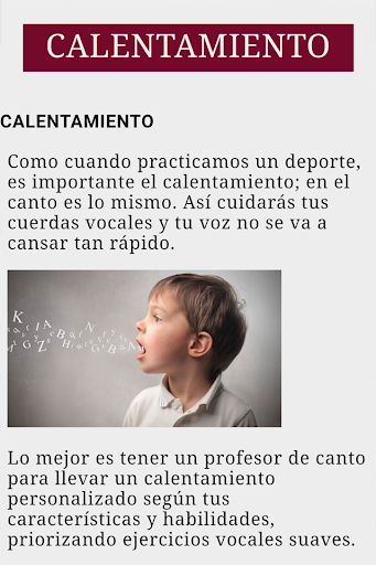 アプリ「歌う方法 - ボイストレーニング(無料)」はスペイン語で完全にチュートリアルを提供しています。このマニュアルは、スコアを知らずに音楽のテーマから学ぶことができ、同時にプロの歌手にとって非常に役立ちます。