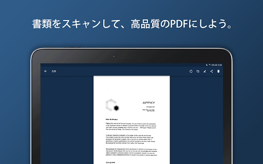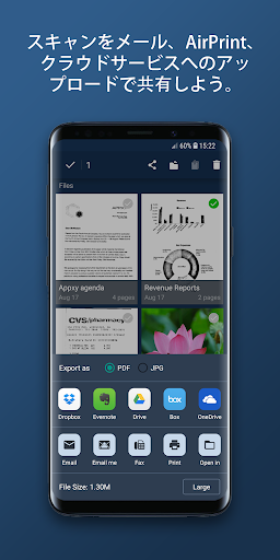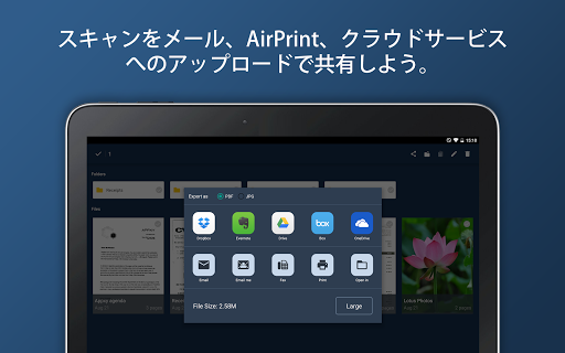 Tiny Scannerは、あなたのスマホを携帯スキャナーに変身させます。 スキャンは、あなたの携帯にイメージもしくはPDFとして保存されます。 スキャンしたものに名前を付けてフォルダーに保存したり、次の方法で共有しよう。