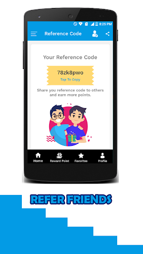参照コードセクションアプリ、そこにあなたはあなたのユニークな紹介コードを見つけることができます。それをコピーしてダウンロードリンクを使って友達と共有します。あなたは彼らがアプリにサインアップしたらポイントを取得し、あなたの参照コードを入力します。