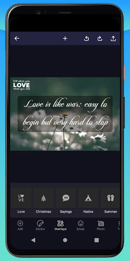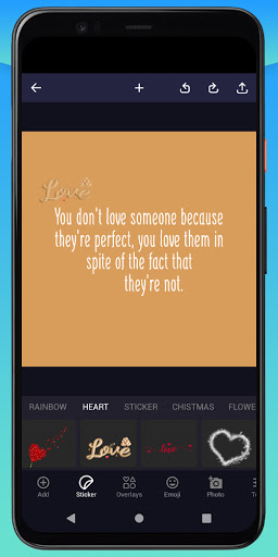 If you love reading love quotes on social networks, or you are simply looking for romantic love quotes to send to your beloved one every day, but you do not know how to make love quote with beautiful pictures, you better not miss the chance to try this app out!
