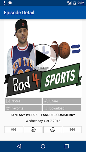 You can also star your favorite episodes and save them to a list so you can easily enjoy them over and over! This app is complete access to Bad 4 Sports Jerry Ferrara and if you're a fan of the show you won't want to be without it!