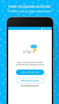 No worry, just create a telegram account here https://web.telegram.org/#/login and then go to kTal. The app will ask you a code at the first connection only and your account will be synchronized