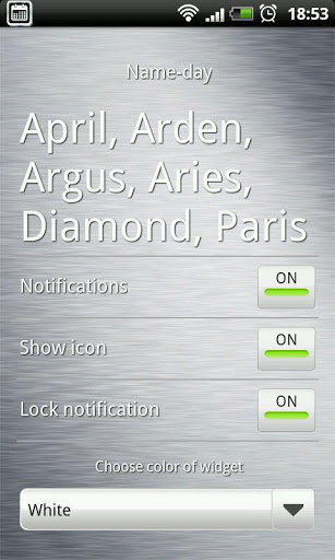 Simply app which displays name-day in notification bar or in the widget. You can choose color of widgets text.