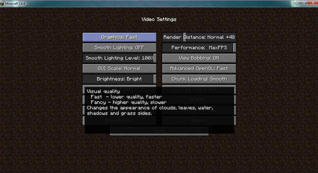 Load Far – loads the world chunks at distance Far, allows fast render distance switching