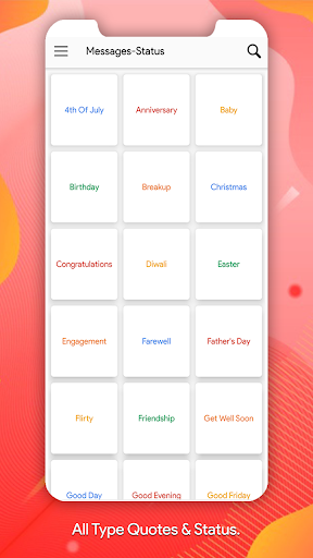 Birthday, Graduation, Farewell, Love, Flirty, Valentine's Day, Break Up, Christmas, New Year, Happy Easter, 4th of July, Diwali, Halloween, Good Friday, Thanksgiving, Daily, inspirational, Friendship, Congratulations, Sorry, Sympathy, Get Well Soon, Thank You.
