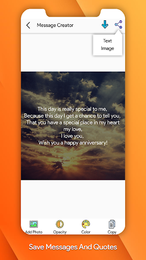 best, fast, simple and easy to use(Touch to change background color and images , share message as a image and as a text option available)