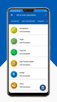 You can calculate Acceleration, Angle, Area Unit, Data Transfer Speed, Energy, Force, Pressure, Power, Roman Numerals, Speed, Temperature, Time Unit, Torque, Weight.