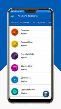 You can do Percentage, Average / Mean, Proportion / Ratio, Equation solver, Combinations, Decimal to Fraction, Fraction Simplifier, GCF / LCM.