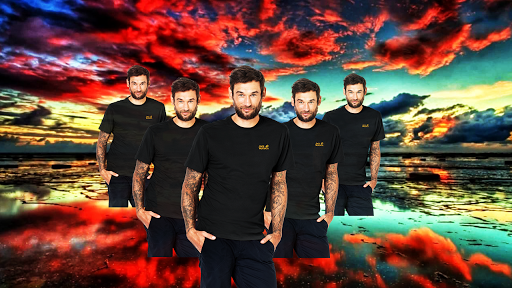 あなたの写真を選択し、あなたの写真を選択し、あなたの体を切り取り、さまざまなミラーマジック(エコー)を適用し、あなたの愛の背景を選択し、ステッカーを追加し、テキストを追加します。
