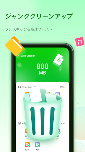 ジャンククリーンアップ:スマートフォンのメモリ内のジャンクを削除し、徹底的なクリーンアップを実行し、RAMを解放し、またRAMの使用を最適化します
