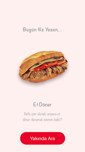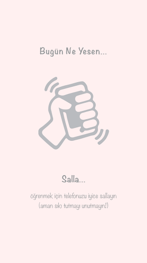 Her gün her gün ne yiyeceğiz diye düşünmekten sıkıldıysanız sizin için güzel bir uygulama yaptık. Telefonu sıkıca tutup sallayın ve önünüze gelen yemeklerden birini seçin ya da arkadaşlarınıza önerin, dilerseniz "Yakında Ara" diyerek o yemeğe ait çevrenizdeki restoranları da listeyebilirsiniz.